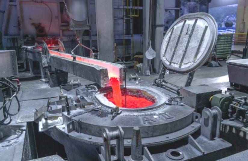 アムテックが生産するアルミ溶湯は、原材料を溶解し、溶けたままのアルミをそのままお届けすることで、溶解を一度で済ませることができます。
